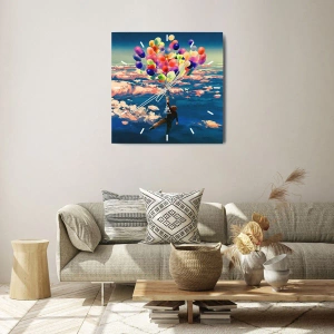 Zegar ścienny "Spełnione marzenie dzieciństwa" to wyjątkowa dekoracja, która oddaje ducha dziecięcej wyobraźni i marzeń o lataniu. Przedstawia postać unoszącą się w powietrzu dzięki wiązce kolorowych balonów na tle błękitnego nieba, co czyni go niezwykle inspirującym dodatkiem do wnętrza.