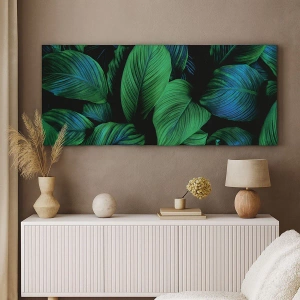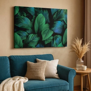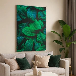 Obraz na płótnie - Gęsta kompozycja zielonych liści w odcieniach szmaragdu - 50x70cm - W zielonym tłumie - Nowoczesna dekoracja ścienna do salonu, kuchni i sypialni ARTTOR