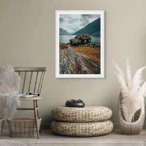 Plakat w białej ramie - Letnisko nad fiordem - 61x91 cm