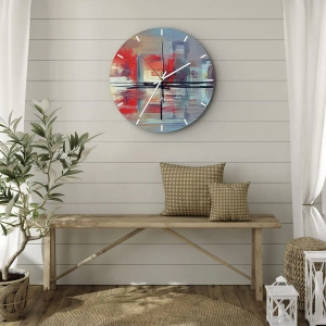 Zegar wykonany jest z bezpiecznego szkła o grubości 4mm. Technologia wykonania zegara jest zgodna z klasą bezpieczeństwa 2B2 według normy PN-EN 12600:2004, która gwarantuje wytrzymałość na uderzenia. Zegar na szkle jest gotowy do powieszenia – posiada metalową zawieszkę zamocowaną z tyłu zegara oraz piankowy dystans regulujący równomierny odstęp zegara od ściany. Zegar posiada cichy mechanizm płynący zasilany baterią 1,5V - bateria AA (bateria nie jest umieszczana w zestawie).