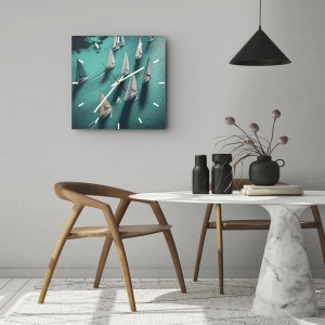 Zegar ścienny - Jachty żaglowe na turkusowej wodzie w dynamicznym układzie - 30x30cm - W zawody z wiatrem - Nowoczesna dekoracja ścienna do salonu, kuchni i sypialni ARTTOR