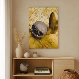 Obraz został starannie wykonany na płótnie klasy Premium, co zapewnia trwałość i wysoką jakość druku. Jego rozmiar 70x50 cm w poziomym układzie doskonale sprawdzi się jako elegancki dodatek do biur, gabinetów czy salonów. Dzięki precyzyjnemu odwzorowaniu detali, każdy element kompasu i mapy przyciąga uwagę, dodając wnętrzu charakteru.
