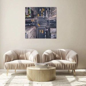 Obraz na szkle - Widok z lotu ptaka na ruchliwe skrzyżowanie w mieście - 100x70cm - Prosty wybór - Nowoczesna dekoracja ścienna do salonu, kuchni i sypialni ARTTOR