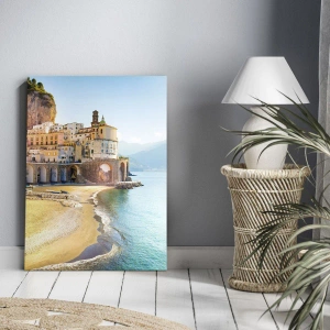 Obraz na płótnie - Malownicze nadmorskie miasteczko z kolorowymi budynkami przy plaży - 50x70cm - Miasto niebywałe - Nowoczesna dekoracja ścienna do salonu, kuchni i sypialni ARTTOR