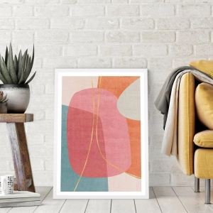Plakat w białej ramie - Pastelowa kompozycja z nicią złota - 70x50 cm