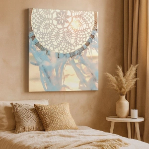 Wybierz "Łapacz snów i zachód słońca" jako wyjątkowy akcent dekoracyjny swojego domu. To dzieło na płótnie wprowadza do wnętrz subtelność i harmonię, podkreślając jednocześnie indywidualny charakter przestrzeni. Ten obraz to idealne połączenie estetyki i funkcjonalności, które nadaje wnętrzom wyjątkowego klimatu.