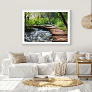 Plakat w białej ramie - Nad pienistą kaskadą - 61x91 cm