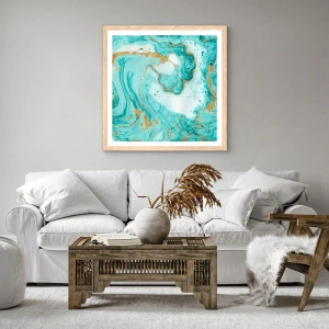 Plakat w ramie jasny dąb - Pod wielką falą z epoki Edo - 50x40 cm