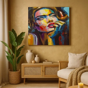 Obraz na płótnie - Kolorowy portret kobiety w stylu ekspresjonistycznym - 160x50cm - Marzenia jak ptaki szybują po niebie - Nowoczesna dekoracja ścienna do salonu i sypialni ARTTOR