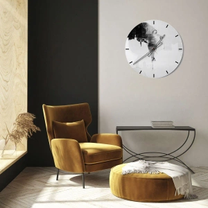 Zegar ścienny - Portret kobiety z konturami miasta w tle, czarno-białe barwy - 30x30cm - Po dwóch stronach szyby - Nowoczesna dekoracja ścienna do salonu i sypialni ARTTOR