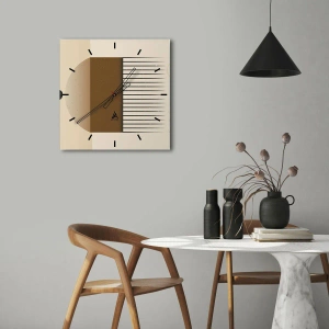 Zegar wykonany jest z bezpiecznego szkła o grubości 4mm. Technologia wykonania zegara jest zgodna z klasą bezpieczeństwa 2B2 według normy PN-EN 12600:2004, która gwarantuje wytrzymałość na uderzenia. Zegar na szkle jest gotowy do powieszenia – posiada metalową zawieszkę zamocowaną z tyłu zegara oraz piankowy dystans regulujący równomierny odstęp zegara od ściany. Zegar posiada cichy mechanizm płynący zasilany baterią 1,5V - bateria AA (bateria nie jest umieszczana w zestawie).