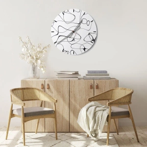 Zegar ścienny - Ścieżki życia, koleje losu - Czarne abstrakcyjne linie na białym tle
