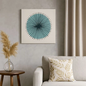 Obraz na płótnie - Abstrakcyjna ilustracja okręgu z promieniami w odcieniach błękitu i czerni - 50x70cm - Promieniście na błękicie - Nowoczesna dekoracja ścienna do salonu, kuchni i sypialni ARTTOR