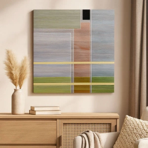 Obraz na płótnie - Geometryczna abstrakcja w stonowanych barwach z akcentami złota - 50x70cm - Prosto i spokojnie - Nowoczesna dekoracja ścienna do salonu, kuchni i sypialni ARTTOR