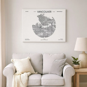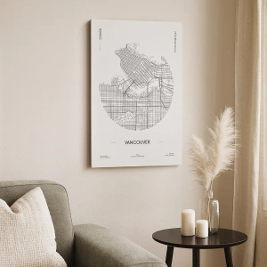 Obraz na płótnie - Minimalistyczna mapa Vancouver w czarnych liniach na białym tle - 50x70cm - Anatomia Vancouver - Nowoczesna dekoracja ścienna do salonu, kuchni i sypialni ARTTOR