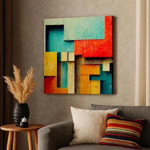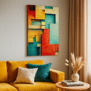 Obraz na płótnie - Abstrakcyjne geometryczne kształty w żywych kolorach - 120x80cm - Festiwal kątów prostych - Nowoczesna dekoracja ścienna do salonu, kuchni i sypialni ARTTOR