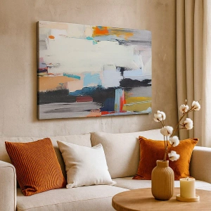 Obraz na płótnie - Abstrakcyjna kompozycja barwnych plam i dynamicznych pociągnięć - 50x70cm - Jest metoda? - Nowoczesna dekoracja ścienna do salonu, kuchni i sypialni ARTTOR