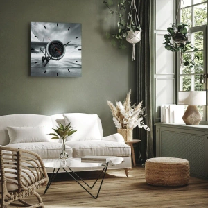 Zegar ścienny - Widok na silnik samolotu pasażerskiego na pasie lotniska - 30x30cm - Jest moc! - Nowoczesna dekoracja ścienna do salonu, kuchni i sypialni ARTTOR