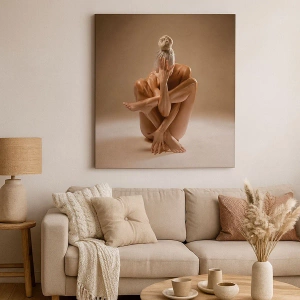 Obraz na ścianę - Jedność ciała i ducha - Artystyczna sylwetka kobiety na beżowym tle