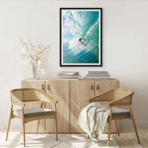 Plakat w czarnej ramie - Surfer na fali w świetle słońca - 50x70cm - Zawsze na fali - Nowoczesna dekoracja ścienna do salonu i sypialni ARTTOR
