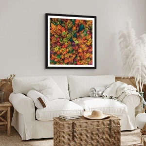 Plakat w czarnej ramie - Kolorowy las widziany z lotu ptaka w jesiennej palecie barw - 50x70cm - Bukiet jesiennych drzew - Nowoczesna dekoracja ścienna do salonu i sypialni ARTTOR