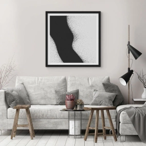 Plakat w czarnej ramie - Minimalistyczna forma fali w czerni i szarości z efektem ziarnistości - 50x70cm - Płynna równowaga - Nowoczesna dekoracja ścienna do salonu i sypialni ARTTOR