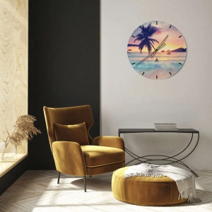 Zegar ścienny - Plaża z palmą i zachodem słońca nad oceanem - 30x30cm - Wieczór w zatoce - Nowoczesna dekoracja ścienna do salonu i sypialni ARTTOR