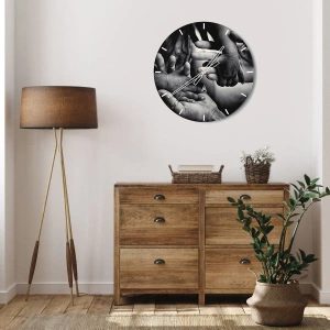 Zegar ścienny - Czarno-białe dłonie różnych pokoleń - 30x30cm - Być człowiekiem - Nowoczesna dekoracja ścienna do salonu i sypialni ARTTOR