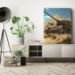 Obraz na ścianę - Nie do pokonania - Czołg w akcji na pustyni, otoczony piaskowym pyłem