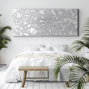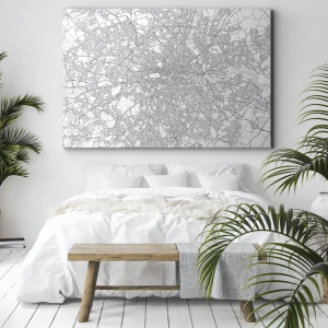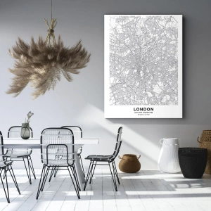 Obraz na płótnie - Czarno-biała mapa Londynu z zaznaczonymi ulicami i rzeką Tamizą - 50x70cm - Mapa londyńskiego labiryntu - Nowoczesna dekoracja ścienna do salonu, kuchni i sypialni ARTTOR