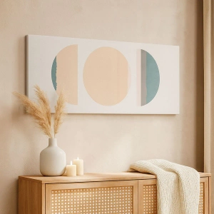 Obraz na płótnie - Abstrakcyjne kształty geometryczne w pastelowych kolorach - 120x50cm - Koło za kołem - Nowoczesna dekoracja ścienna do salonu i sypialni ARTTOR