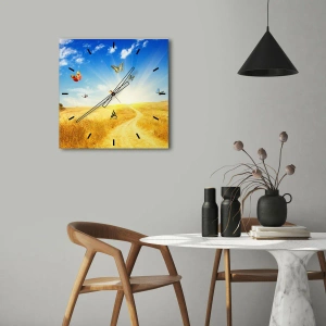 Zegar ścienny - Złote pole, ścieżka i motyle na tle błękitnego nieba - 30x30cm - I jak tu nie kochać lata? - Nowoczesna dekoracja ścienna do salonu i sypialni ARTTOR
