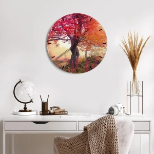 Zegar ścienny - Jesienny krajobraz z drzewami w intensywnych kolorach - 30x30cm - Szał rozkwitu - Nowoczesna dekoracja ścienna do salonu i sypialni ARTTOR