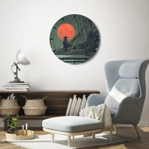 Zegar ścienny - Samotny wojownik z mieczem na tle czerwonego księżyca w mrocznym lesie - 30x30cm - Wojownik czerwonego księzyca - Nowoczesna dekoracja ścienna do salonu i sypialni ARTTOR