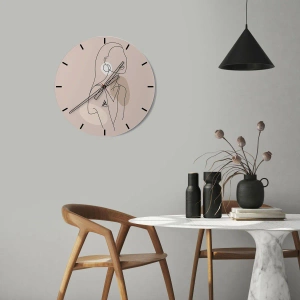 Zegar ścienny - Minimalistyczna ilustracja kobiety z konturów na beżowym tle - 30x30cm - Ikona dziewczęcości - Nowoczesna dekoracja ścienna do salonu i sypialni ARTTOR
