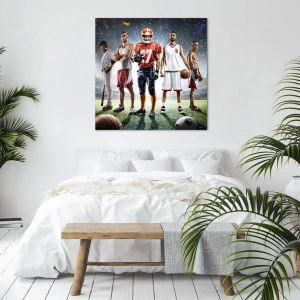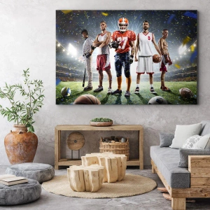 Obraz na płótnie - Sportowcy z różnych dyscyplin na dynamicznym tle stadionu - 50x70cm - Gladiatorzy boisk - Nowoczesna dekoracja ścienna do salonu, kuchni i sypialni ARTTOR
