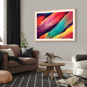 Plakat w ramie jasny dąb - Pierzasta tęcza - 60x60 cm