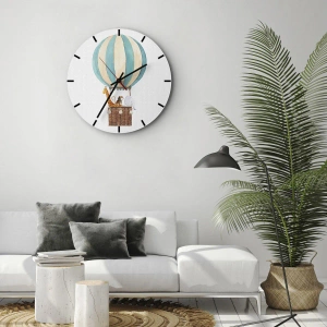 Zegar ścienny – Fantastyczna wycieczka – Balon z żyrafą i słoniem unoszący się w chmurach