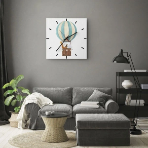 Zegar ścienny - Balon z żyrafą i słoniem unoszący się w chmurach - 30x30cm - Fantastyczna wycieczka - Nowoczesna dekoracja ścienna do salonu, kuchni i sypialni ARTTOR