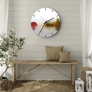 Zegar ścienny Obietnica spokoju - Minimalistyczny pejzaż z czerwonym słońcem i odbiciem