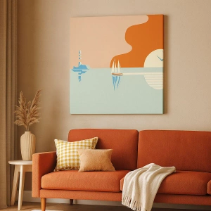 Obraz na płótnie - Minimalistyczny pejzaż morski z żaglówką i zachodem słońca - 120x50cm - Morski pejzaż idealny - Nowoczesna dekoracja ścienna do salonu i sypialni ARTTOR
