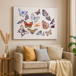 Obraz na płótnie - Kolorowe motyle na białym tle - 70x100cm - Koronkowy, barwny rój - Nowoczesna dekoracja ścienna do salonu i sypialni ARTTOR
