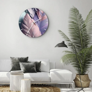 - Zegar z motywem pastelowych piór w odcieniach różu, fioletu i mięty. Lekka i elegancka dekoracja do sypialni lub salonu w romantycznym stylu.