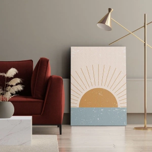 Obraz na płótnie - Minimalistyczna grafika przedstawiająca wschód słońca nad linią horyzontu - 50x70cm - Codzienny cud - Nowoczesna dekoracja ścienna do salonu, kuchni i sypialni ARTTOR