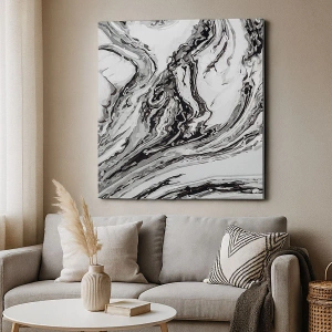 - Stylowy obraz z marmurkowym wzorem w czerni i bieli, idealny do nowoczesnych i minimalistycznych wnętrz.