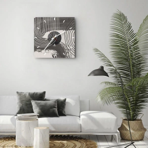 Zegar ścienny "Owal zwycięża" to dynamiczna, kontrastowa kompozycja, która przyciąga wzrok swoim graficznym układem. Głównym motywem są linie układające się w falującym rytmie, otaczające centralnie umieszczony okrąg w głębokiej czerni. Całość utrzymana w palecie czerni, bieli i szarości tworzy harmonijną, choć ekspresyjną formę opartą na graficznych kontrastach.