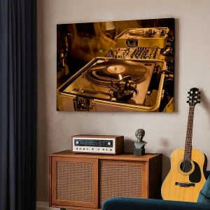 Motyw gramofonu i miksera symbolizuje pasję do muzyki, kreatywność i dynamikę. Światła oraz rozmycie ruchu oddają klimat imprezy, czyniąc obraz wyjątkowym akcentem dekoracyjnym. To idealna ozdoba do salonu, pokoju muzycznego lub klubu, dodająca wnętrzu rytmu i inspiracji.