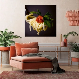Obraz na ścianę - Smakowity kęs - Makaron spaghetti z sosem pomidorowym