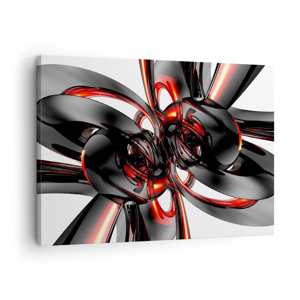 Obraz na płótnie - Abstrakcyjna grafika 3D z czarnymi i czerwonymi elementami - 70x50cm - Ruch w graficie i czerwieni - Nowoczesna dekoracja ścienna do salonu i sypialni ARTTOR
