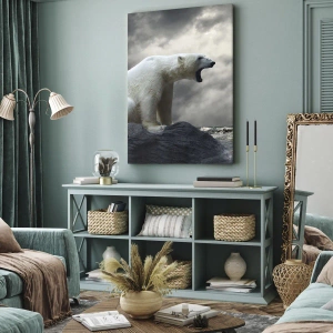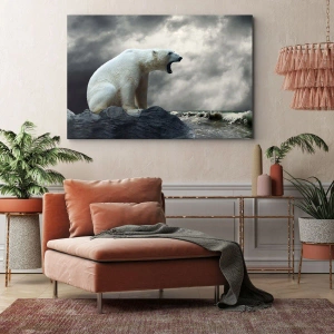 Obraz na płótnie - Niedźwiedź polarny na skałach nad wzburzonym morzem - 120x80cm - Samotny król Arktyki - Nowoczesna dekoracja ścienna do salonu, kuchni i sypialni ARTTOR